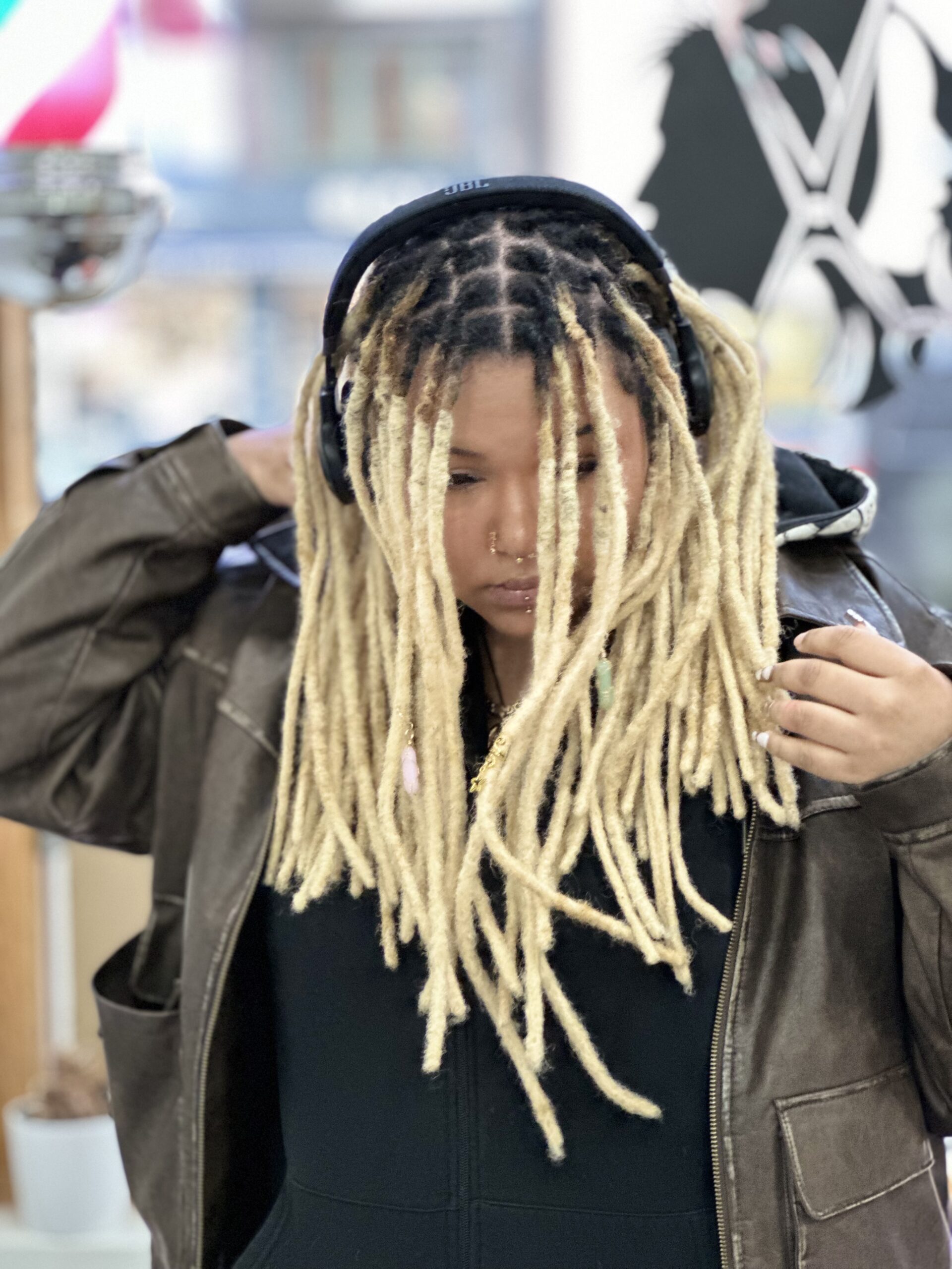 Our pale blonde Color #613 Human Hair Loc Extension gives you a new feeling. Experience the boldest and most daring color around you while you have some fun with your locs.